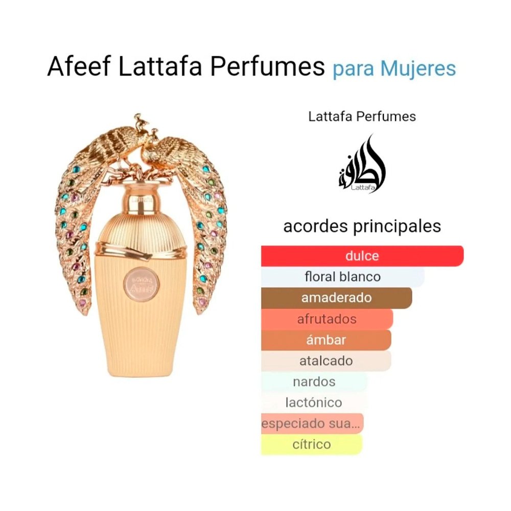Afeef de Lattafa es una oda a la belleza visual y sensorial. Lanzada en 2024, esta fragancia unisex es una joya de la familia Floral Frutal Gourmand, diseñada para quienes no temen destacar. Con una presentación que evoca la majestuosidad de los pavos reales, Afeef no es solo un perfume; es un objeto de diseño que encierra un elixir cremoso, dulce y profundamente sofisticado.