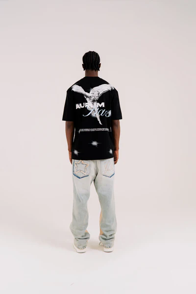 El diseño presenta una arquitectura visual impecable: en el frontal, el emblema Aurum RR impreso en alta densidad para una textura táctil de lujo. En la parte posterior, el icónico arte Ghost Stars domina la silueta. Como sello final de exclusividad, incorpora un Rubber central en forma de estrella negra con borde blanco, aportando un relieve físico que certifica la autenticidad y el detalle artesanal de la marca.