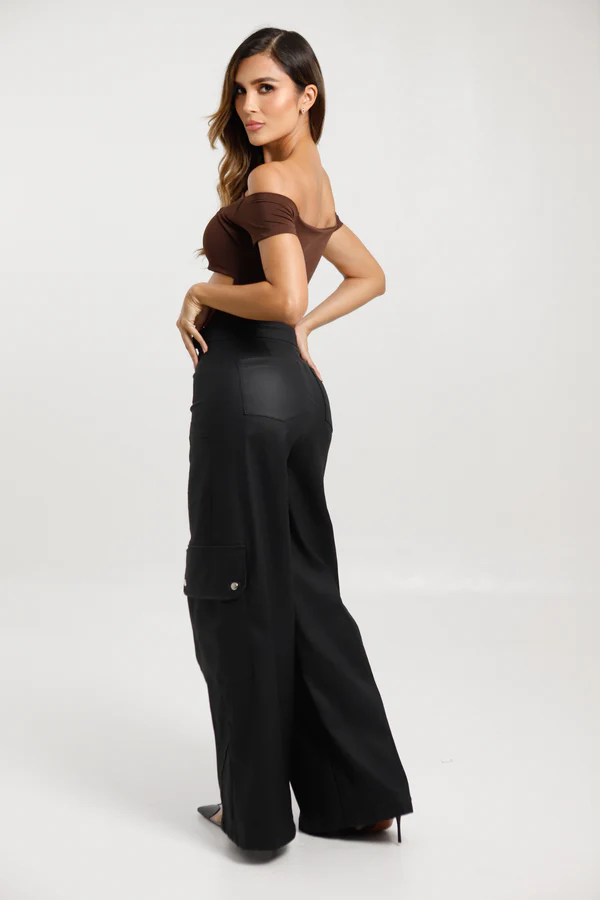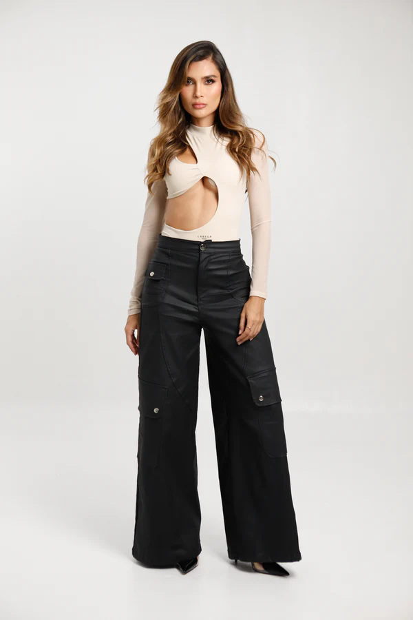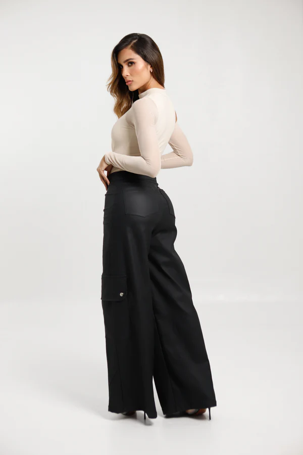 Domina la escena urbana con el Pantalón Labeur Edimburgo Negro, una prenda que fusiona la fuerza del estilo industrial con la elegancia de la alta costura. Confeccionado en una base de bengalina premium, este pantalón destaca por su exclusivo recubrimiento PV elástico, que otorga un acabado satinado profundo y una textura técnica que se adapta al cuerpo con una flexibilidad excepcional.