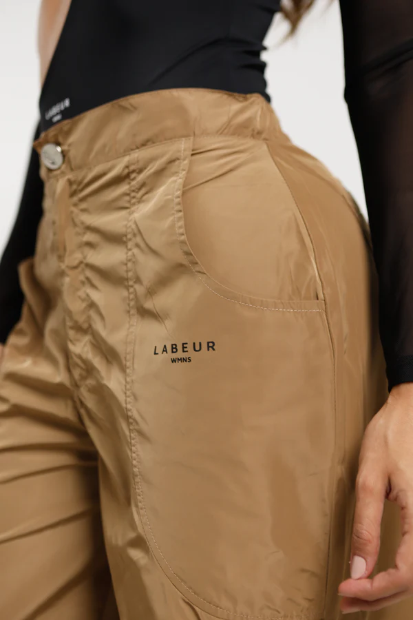Eleva tu estética urbana con el Pantalón Labeur Malbork Café, una pieza que desafía los límites del diseño convencional. Confeccionado en una avanzada tela rompevientos pesada, esta prenda destaca por su recubrimiento brillante, un acabado técnico que otorga un reflejo metálico sofisticado y una resistencia superior a los elementos.