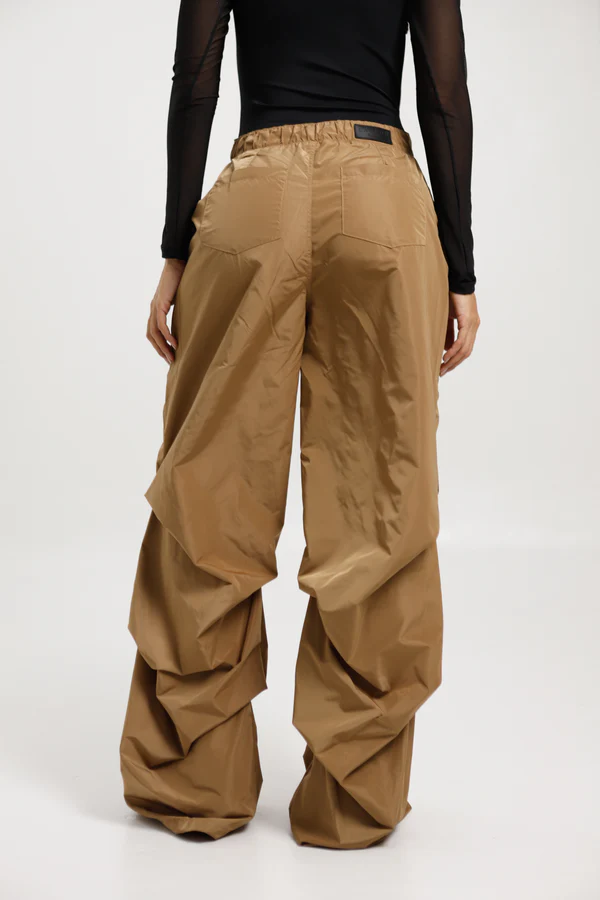 El diseño se define por su arquitectura vanguardista: presenta una bota ancha de caída imponente y un recogido lateral estratégico que no solo aporta textura y movimiento, sino que también ayuda a estilizar la figura con un toque disruptivo. En VENTAS JP, el tono café de esta edición añade una capa de calidez y lujo orgánico a una pieza eminentemente técnica. Es el pantalón ideal para quienes buscan una silueta de impacto con la funcionalidad de un tejido de alto rendimiento.