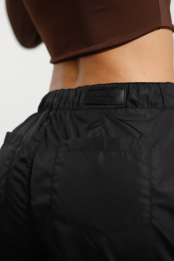 Eleva tu autoridad visual con el Pantalón Labeur Malbork Negro, una pieza que personifica el lujo técnico y la vanguardia urbana. Confeccionado en una tela rompevientos pesada de alto gramaje, este pantalón destaca por su recubrimiento brillante profundo, que otorga un efecto visual de cuero líquido o “wet look”, capturando cada destello de luz con una intensidad superior.