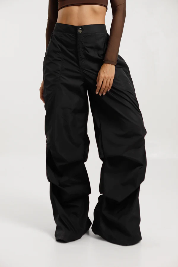El diseño es una declaración de diseño arquitectónico: su bota ancha crea una caída imponente, mientras que el recogido lateral estratégico genera una serie de pliegues dinámicos que estilizan y aportan volumen controlado. El negro absoluto potencia el brillo técnico del tejido, convirtiéndolo en una prenda de alto impacto que no necesita accesorios adicionales para destacar. En VENTAS JP, el modelo Malbork Negro es la elección de quienes buscan una silueta audaz con la protección y durabilidad de los materiales de ingeniería.