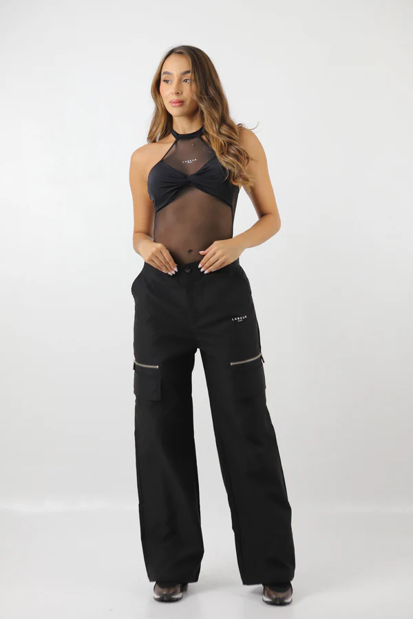Eleva tu presencia con el Pantalón Labeur Rennes Negro, una pieza de diseño arquitectónico que redefine la elegancia moderna. Esta prenda destaca por su confección en un exclusivo poliéster texturizado con filamentos diagonales, una técnica textil que aporta una profundidad visual única y un tacto premium que se aleja de los tejidos convencionales.